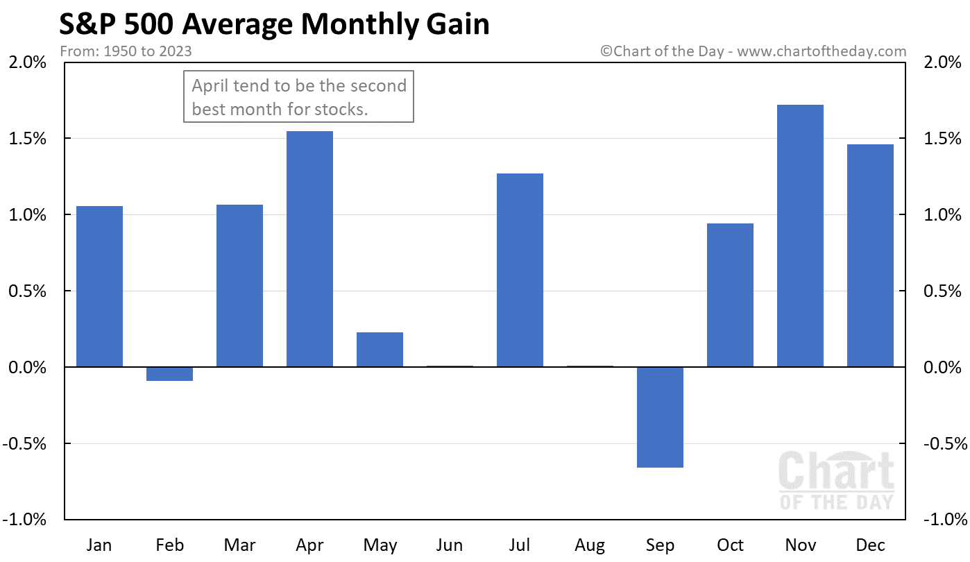 The chart illustrates that the calendar month of April has tended to be a good month for stocks.